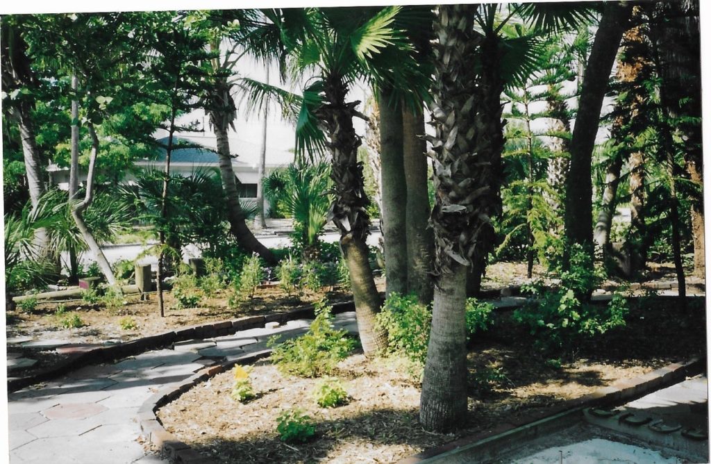 At the bottom of the photo of the finished house you can see a railroad tie and the beginning of a Viburnum hedge. I planted 75 three gallon container of Viburnum next to the sidewalk on PAG Way and along the alley (in the city’s right of way). That was a lot of work! Several years later the yard was flooded during the “No Name” storm and killed all of the Viburnum, plus two orange and two grapefruit trees. The next spring I planted 75 Oleanders and ten Carrotwood trees, all of which where salt tolerant. I grew my own Washingtonia palms and planted them in the right of way and along the seawall at the end of the alley (to discourage fishermen).