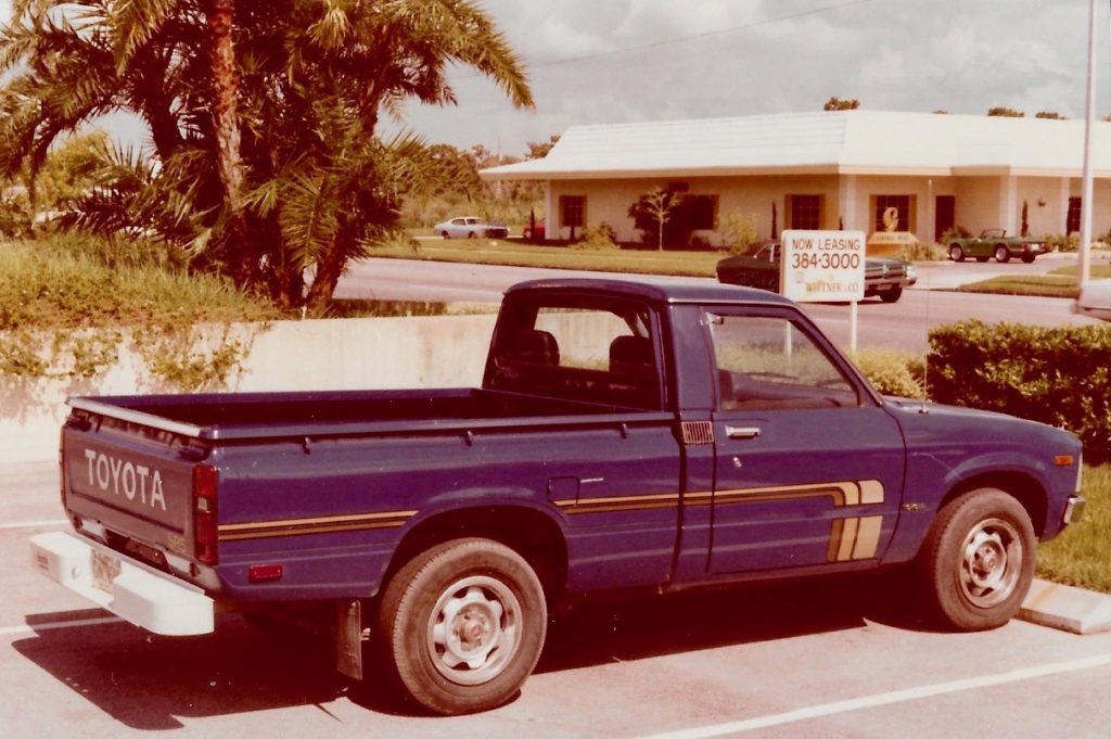 I also began collecting Augusta road bricks and old hexagon sidewalk blocks, you can see stacks of them behind the Viburnum hedge in the photo of the finished house. We had a BMW 320 and a Blue Toyota pickup truck we nick-named “Willie”. I-275 was being built through south St. Pete, just a 10 minute drive from our house and all kinds of good stuff was being scooped up to be hauled away. Have pickup truck, will scavenge!