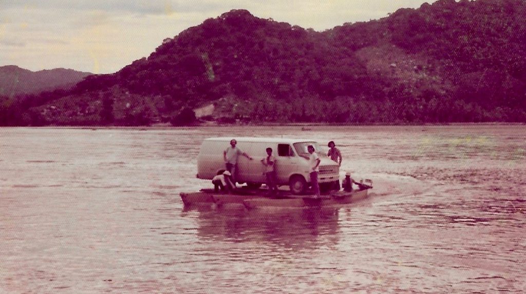 We were ultimately heading to Playa de Carmen to take a ferry to Cozumel.  When in Mexico, we tried to never drive at night.  When it started to get dark, we would look for a place to pull over.  The vans were parked close together, with their sliding side doors open, and Satan on his leash between them.  All in all, we felt pretty safe.  We had hidden an old 32 caliber pistol, and for a while had 5 bullets.